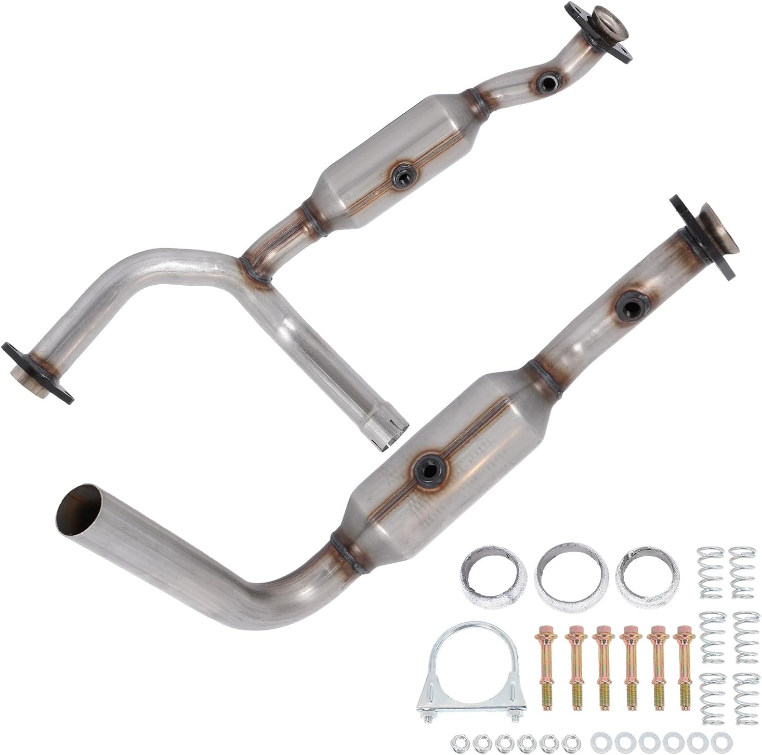 • Specification: ① E.P.A. Compliant: Yes;② Vehicle's Specifications: Federal Emissions Emissions;③ Restricted States: CA, NY, CO, ME;④ Inlet Type A: 2 Bolt Loose Flange w/ Spherical Flare;Inlet Type B: 2.50" ID Pipe;Inlet Quantity: 2;Outlet Type A: 2 Bolt Loose Flange w/ Spherical Flare;Outlet Quantity: 1;⑤ Inlet Type C: 2 Bolt Loose Flange w/ Spherical Flare;Inlet Quantity: 1;Outlet Type C: 2.50" OD Pipe;Outlet Quantity: 1;⑥ Clamp & Bolts & Coil spring & Seal Included: Yes